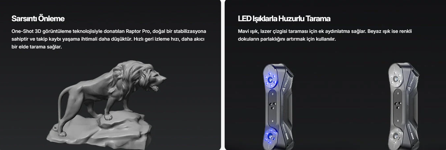 Optik Sistem ve Stabilite: Raptor Pro, daha gelişmiş optik yapı ve izleme algoritmalarıyla daha stabil tarama ve daha hızlı hizalama deneyimi hedefler.