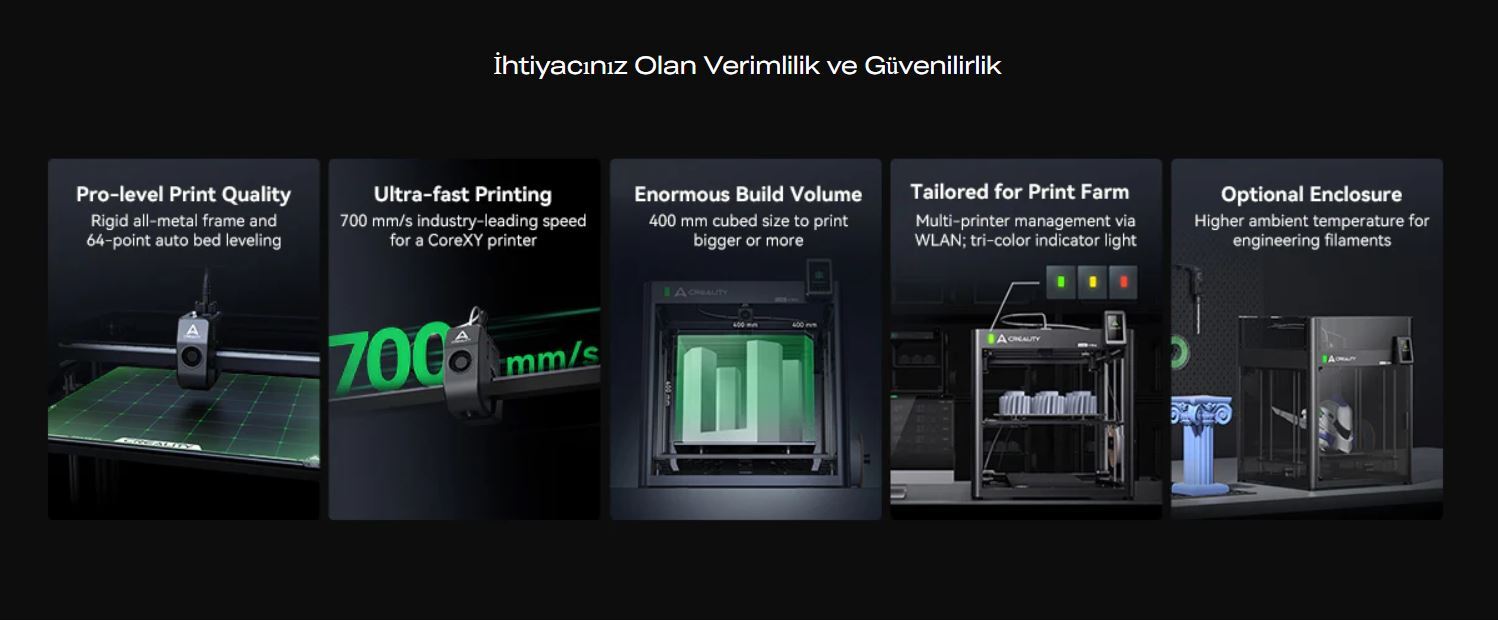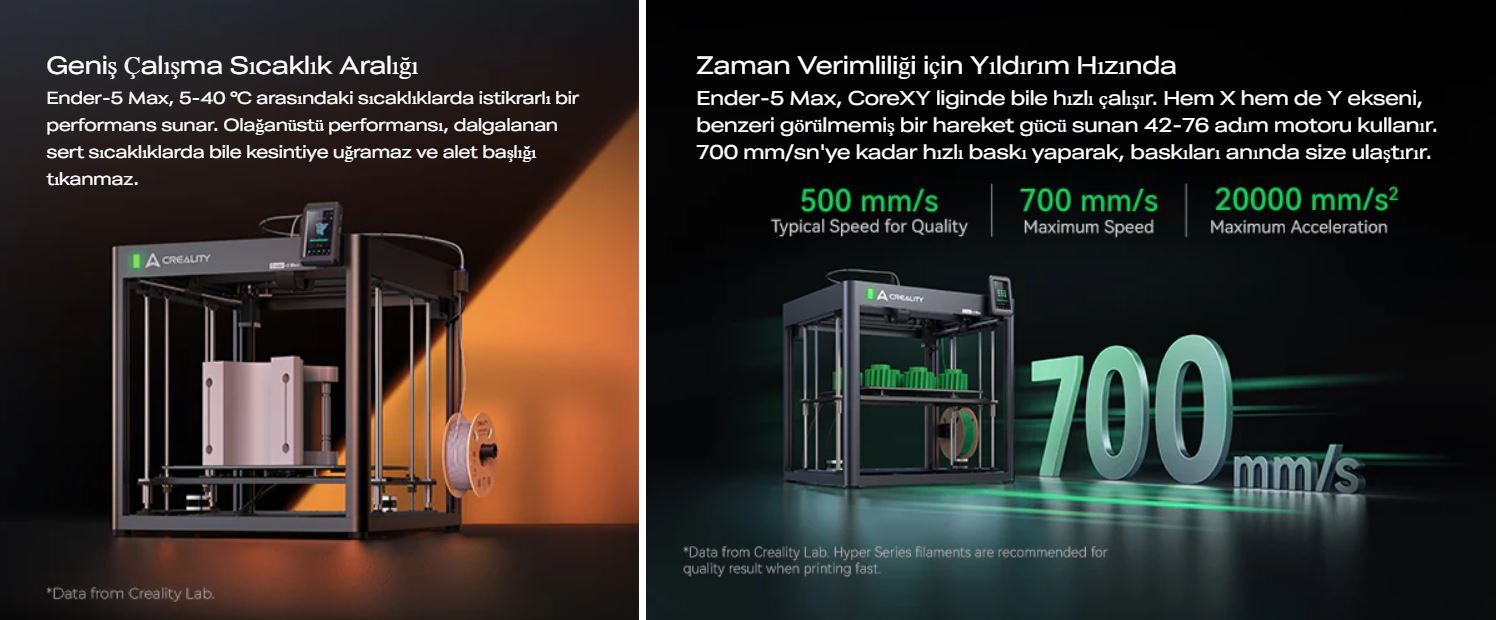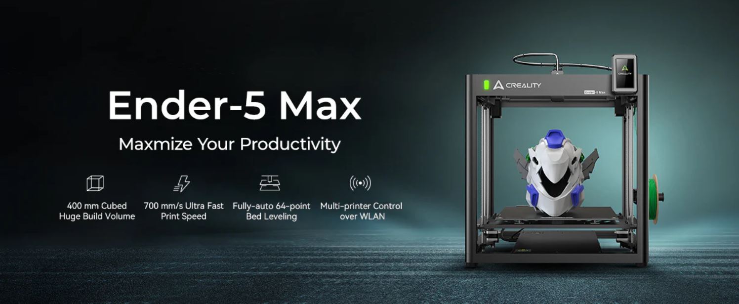 The Creality Ender-5 Max is a powerful CoreXY 3D printer that combines industrial-grade stability, high-speed performance, and a large build volume. Its massive 400 × 400 × 400 mm build area allows you to print large models in a single piece, while the print speed of up to 700 mm/s significantly boosts productivity.