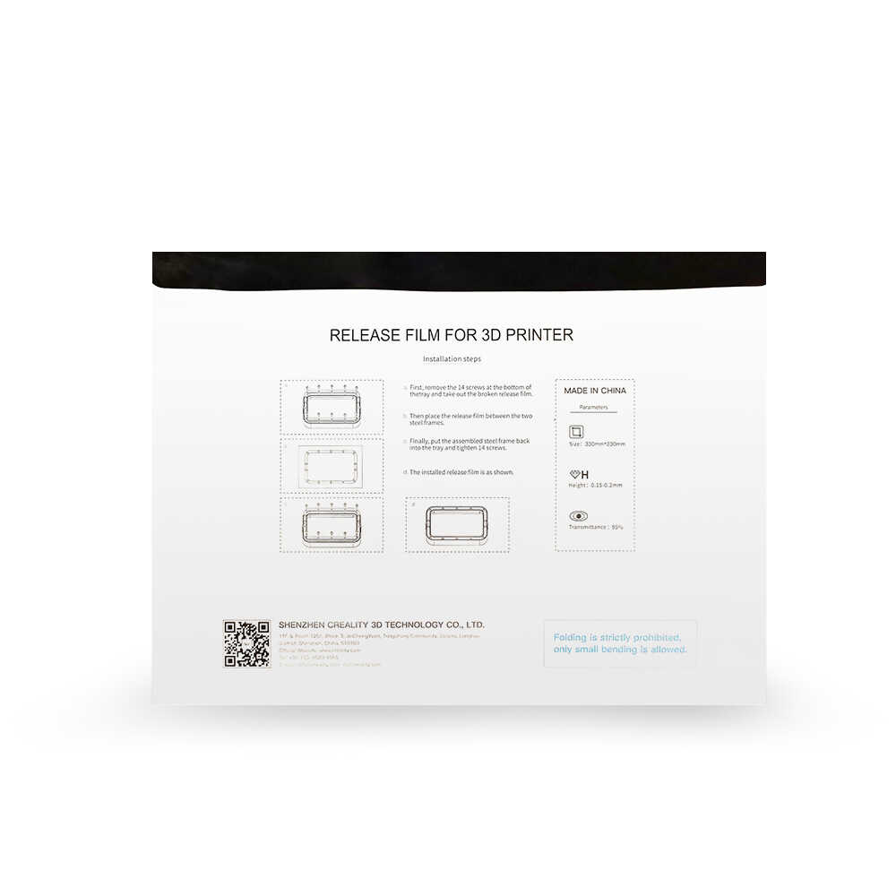 Creality Halot-Sky FEP Film 266x190x0.15mm, birinci sınıf malzemeden üretilen bu film, yapışmaz yüzeye sahip olup UV ışınlarına karşı dayanıklıdır. Ayrıca bu özellikler ürünü, daha hafif serbest bırakma kuvvetine ve daha pürüzsüz bir yüzeye sahip olmasına yardımcı olması ile birlikte serbestçe çizip büyük ölçüde kesmesini sağlamaktadır. FEP film, baskı sırasında deforme veya hasar gördüğü zaman değiştirilmesi gerekmektedir.
