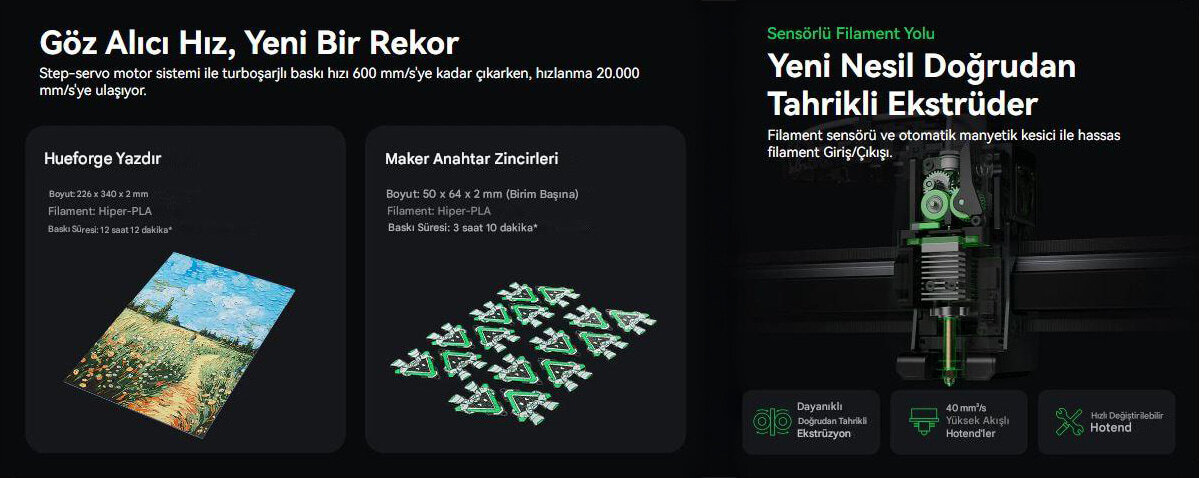 | Supported Filaments | PLA, ABS, ASA, PETG, TPU, PA, PC, PPS, PAHT-CF, Hyper Series filaments |