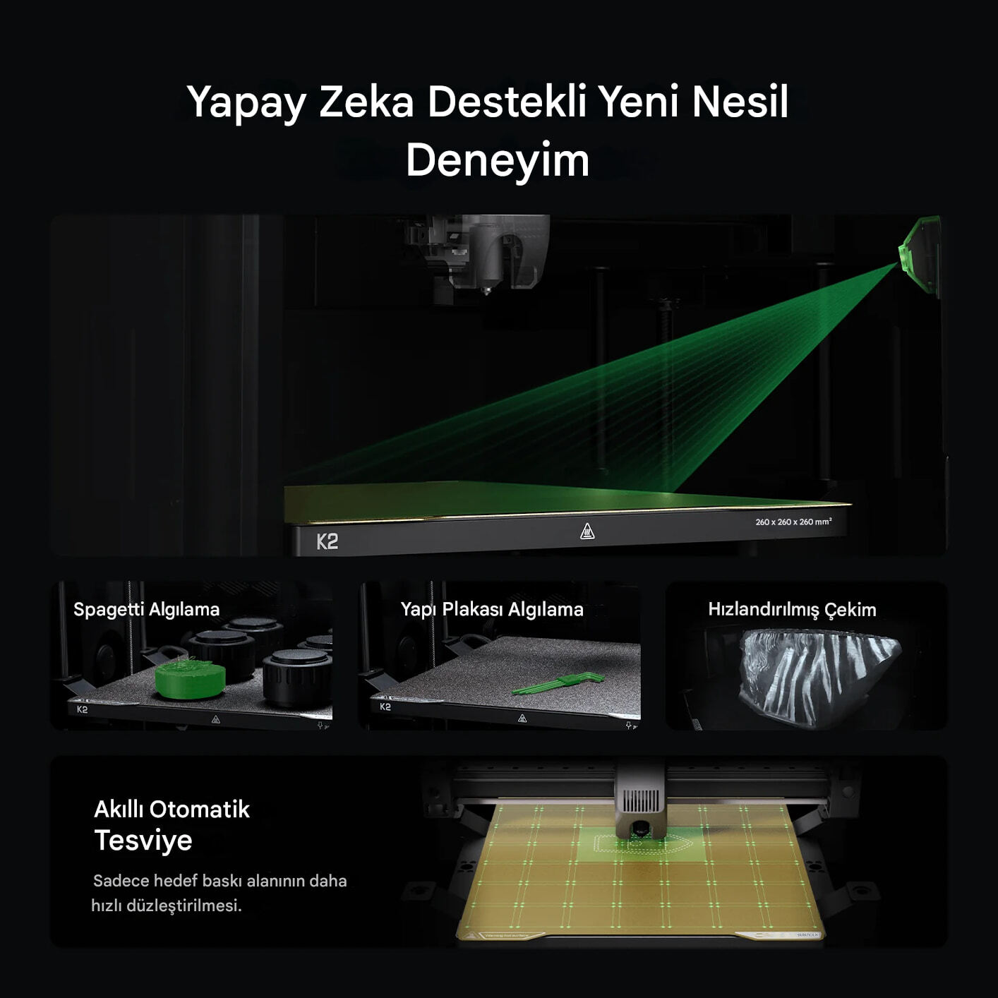 The Creality K2 Combo 3D Printer is a professional-grade 3D printer designed for high-speed and multi-color printing. It features an integrated CFS (Color Filament System) that enables multi-filament printing. With its metal frame structure, advanced cooling system, and powerful step-servo motors, it provides industrial-grade durability. The K2 Combo is an excellent choice for both professionals and advanced hobbyists, thanks to its user-friendly interface, smart camera tracking, and automatic calibration features.