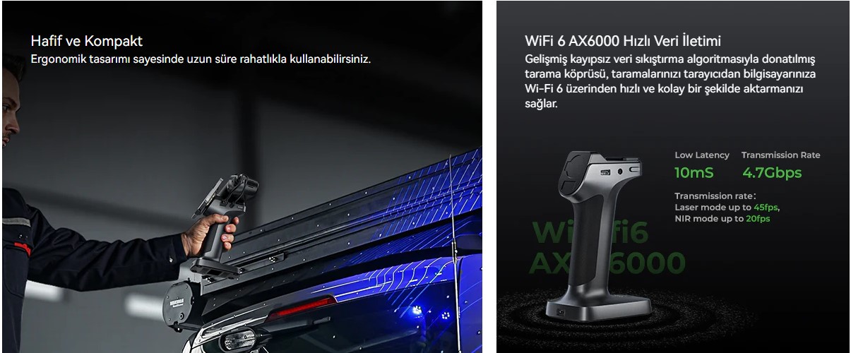 - İletim hızı: Lazer modu 45 fps'ye kadar; NIR modu 20 fps'ye kadar