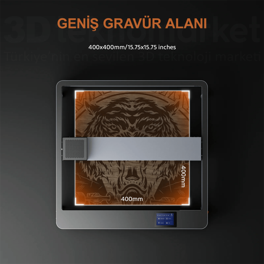 Large Engraving Area: The machine also has a generous engraving area of 400 x 400 mm /15.75x15.75 inches, giving you creative freedom to undertake large projects or engrave multiple pieces at once. Additionally, its adjustable laser head and risers allow for easy engraving on objects of different heights.