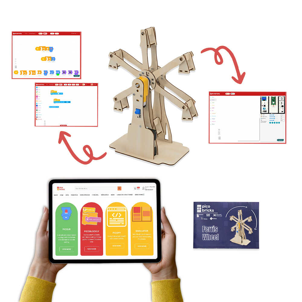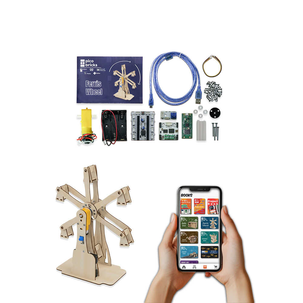 The e-book included with the product guides you in building your own Ferris wheel. All construction stages and necessary codes are shared with you step by step in the e-book.