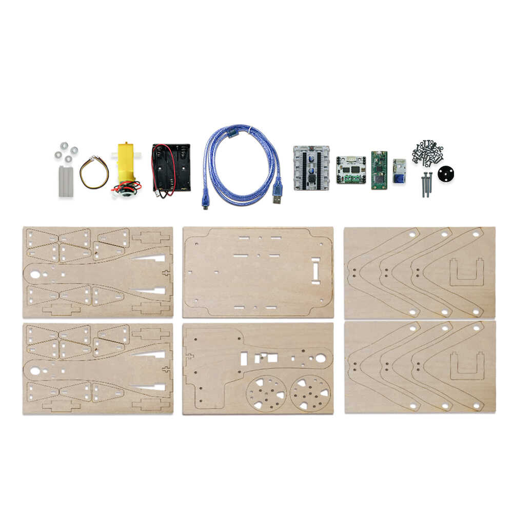 This toy comes out of the box with wooden parts and a programmable mini-computer Raspberry Pi. This makes it a DIY toy.