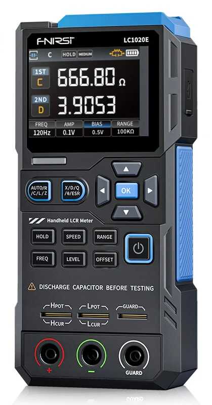 Taşınabilir ve ergonomik yapıya sahip olan LC1020E, renkli TFT ekranı sayesinde ölçüm değerlerini net ve okunabilir şekilde sunar. Frekans seçimi, RMS test seviyesi ayarı, seri/paralel ölçüm modları ve karşılaştırma (sorting) özellikleri ile profesyonel kullanım ihtiyaçlarını eksiksiz karşılar.