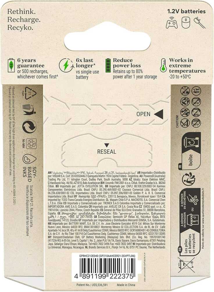 GP ReCyko Ni-MH 2100 AA Şarjlı Kalem Pil 1.2 Volt - 6 Adet