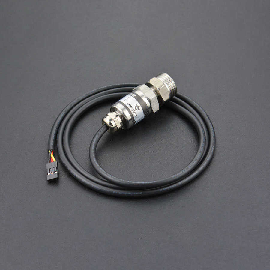 Gravity Analog Su Basınç Sensörü, 0-1.6 Mpa basıç aralığında ölçüm yapabilen, ölçüm sonucunu 0.5 – 4.5 V arasında linear olarak voltaj çıkışı gösteren bir sensördür. Yani 0 basınçta 0.5 V çıkış verirken 1.6Mpa basınçta ise 4.5V çıkış verecektir. Akıllı bahçe sulama sistemleri, su basıncının kontrol edilmesinin gerektiği projelerde kullanabilirsiniz. Ölçüm aralığı 0-1.6 Mpa olmasına karşı 2Mpa basınca kadar sensörü kullanabilirsiniz. 3Mpa basınç ise sensörün hasar alma basıncıdır. Bu basınca yaklaşan ve üstüne çıkan değerlerde bu sensörün kullanılması sensörün bozulması ile sonuçlanacaktır.