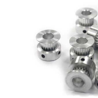 It is an aluminum pulley with 20 teeth compatible with 8mm shaft stepper motors that you can use in your 3D printers. Having fewer teeth will reduce the speed of movement, but in return, it will allow you to obtain more precise outputs. It has teeth that prevent the belt from slipping. It is fixed to the shaft with two setscrews.