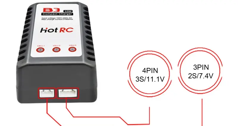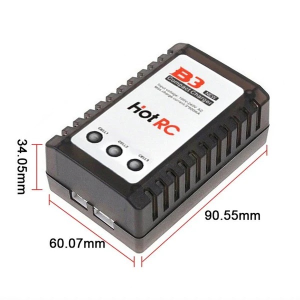 HOTRC B3 10W LiPo Pil Şarj Cihazı, RC araçlar, drone’lar, uçaklar ve uzaktan kumandalı oyuncaklarda kullanılan 2S ve 3S LiPo piller için özel olarak tasarlanmış kompakt ve kullanımı kolay bir denge şarj cihazıdır. Güç korumalı yapısı ve LED göstergeleri sayesinde güvenli ve pratik bir şarj deneyimi sunar.