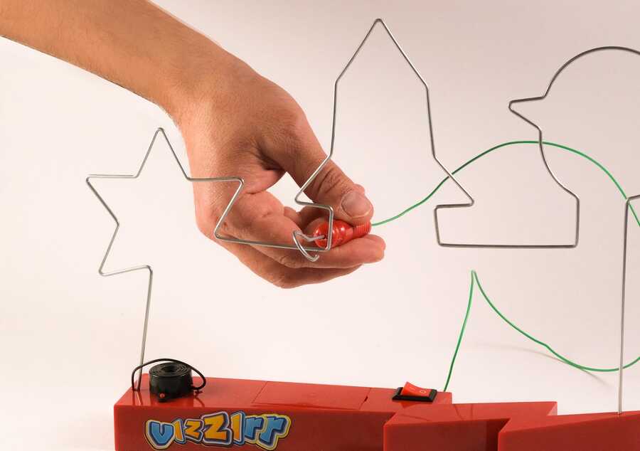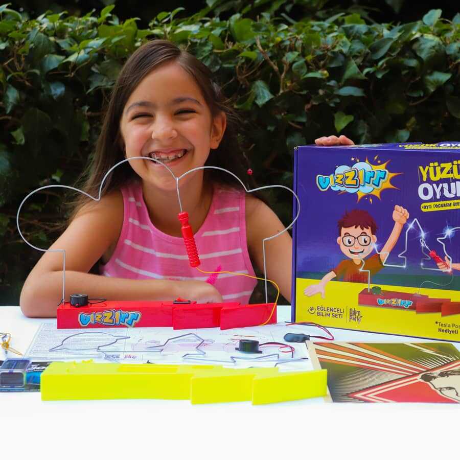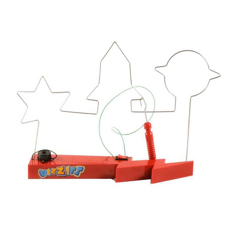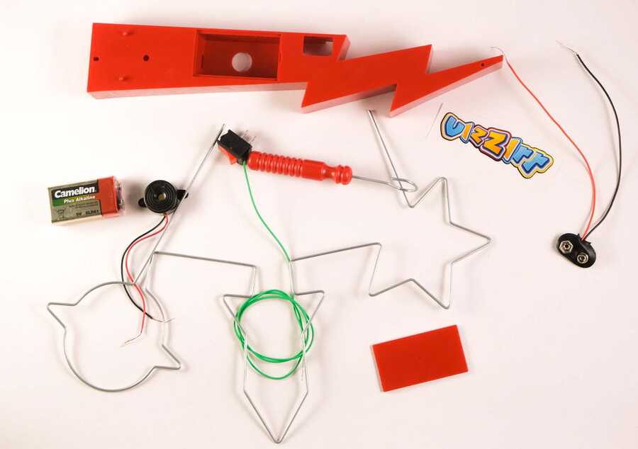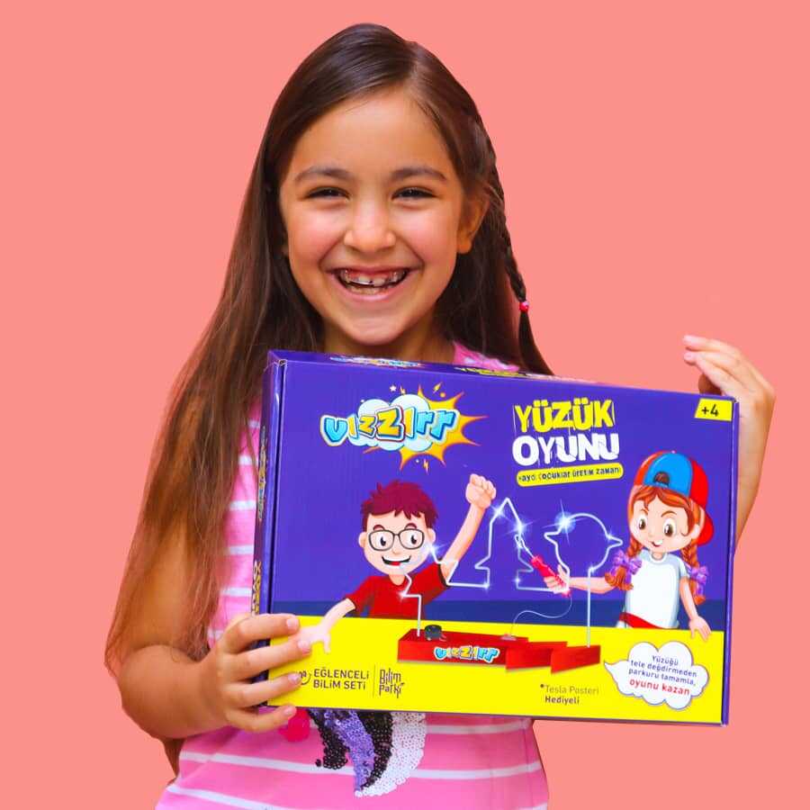 Vızzır (Yüzük Oyunu) Seti, çocukların eğlenerek öğrenmesini hedefleyen bir kendin yap ürünüdür. El becerisi gelişimine katkı sağlar ve üretim bilincini destekler. Temel elektroniğin uygulamalı şekilde öğrenilmesini sağlayan bu sette, devre üzerinde bir adet buzzer bulunur. Oyun çubuğu metale değdiği anda devre iletime geçer ve buzzer çalışarak uyarı sesi verir.