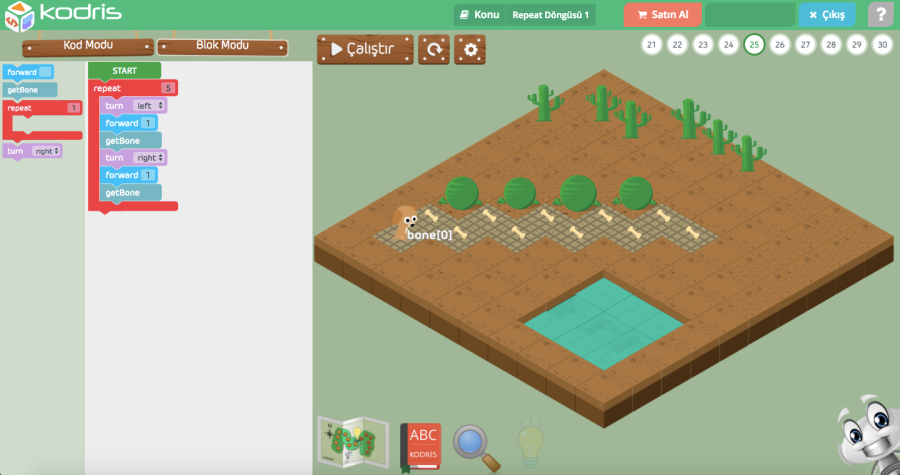 Öğrencilerimizin görevleri çözerken kullanabilecekleri iki mod bulunmaktadır. Kod modu ile gerçek kodlama yaparak öğrenciler kendi çözümlerini oluşturmaktadırlar. Kod moduyla gerçek kodlama yapılırken karşılığı olan algoritmaya bağlı blok dizimi blok modu sekmesi altında sistem tarafından otomatik olarak oluşturulmaktadır. Blok modunda ise öğrenciler gerekli algoritmayı oluştururlarken karşılığı olan gerçek kod sistem tarafından kod modu sekmesi altında otomatik olarak oluşturulmaktadır. Bu sayede öğrencilerimiz Pyhton dilinin döngüler, değişkenler, fonksiyonlar, koşullar ve daha birçok özelliğini öğrenmiş olacaklardır.