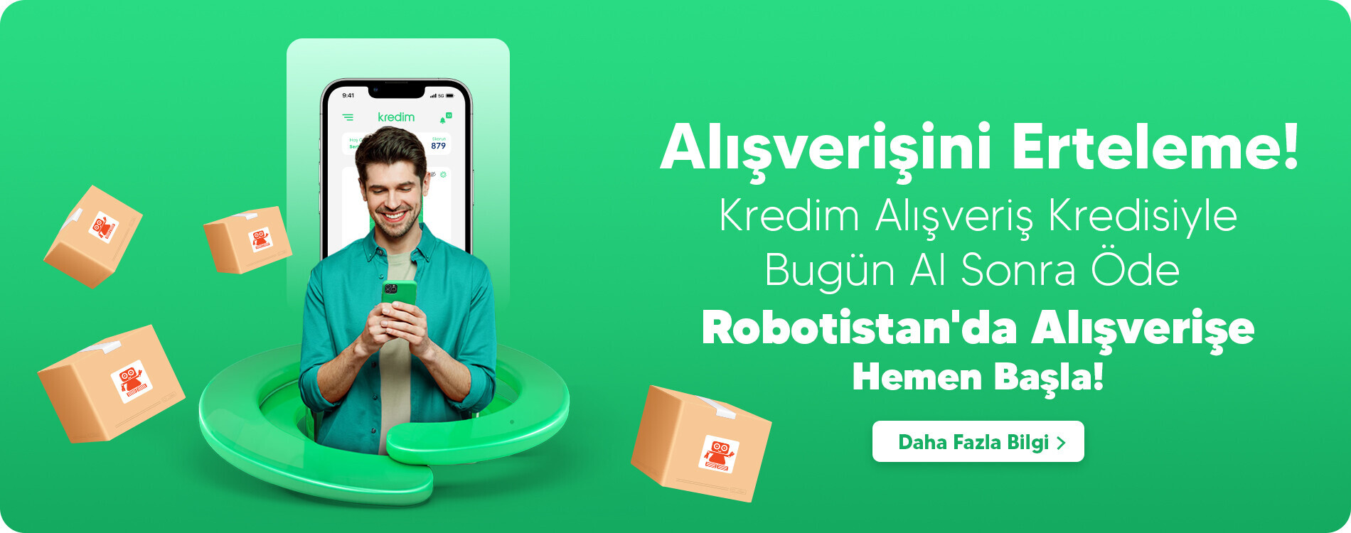 • Kredim alışveriş kredisi ile Robotistan’dan yapılacak alışverişlerinizi 6 aya kadar taksitlendirebilirsiniz. Vade oranları Kredim’in belirlediği oranlardır.