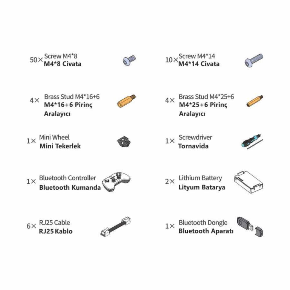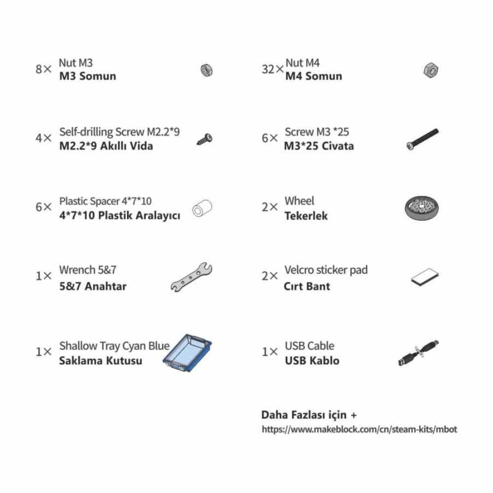 In The MakeX 2019 City Guardian Kit has electronic boards, motors, sensors and structural parts required to create and perform missions. The list of detailed set contents is available on the product image.