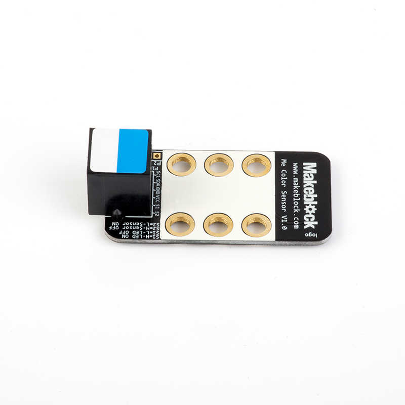 The Me Color Sensor is a color sensor capable of recognizing a total of six colors, including black, white, red, blue, yellow, and green. This module's interface port is a standard blue-and-white, and uses I2C protocol for communication. It must be directly connected to a motherboard with a blue-and-white interface port.