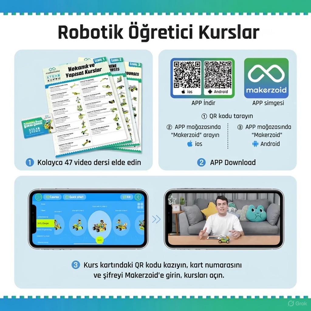 Makerzoid 200-in-1 Scratch Jr Kodlama Robot Kiti (Premium), çocukların erken yaşta kodlama, robotik ve mühendislik becerileri kazanmasını hedefleyen kapsamlı bir STEM eğitim setidir. Scratch Jr tabanlı sürükle-bırak programlama yaklaşımı sayesinde ekranlı ve ekransız kodlama deneyimini bir araya getirir.