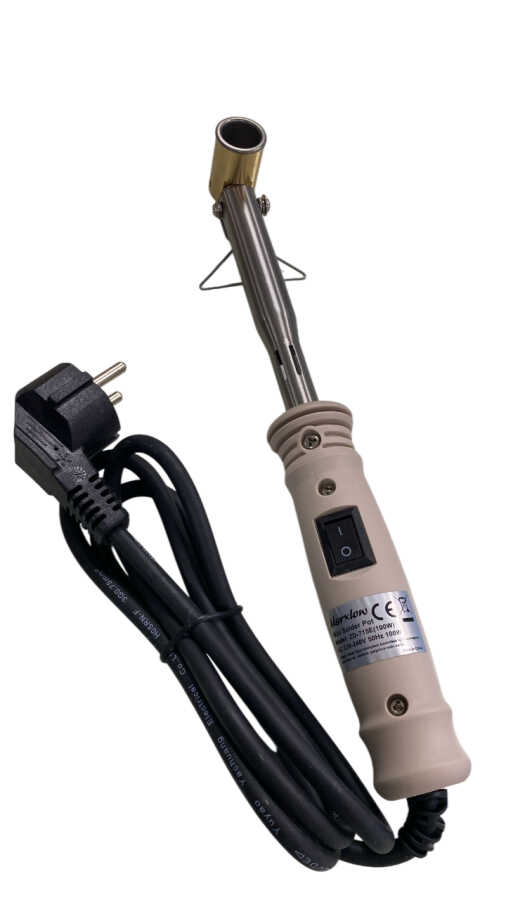 It is ideal for working with cable ends, small electronic components, or desoldering wicks, offering maximum efficiency during soldering. The built-in on/off switch and metal support stand provide easy control, stability, and safe use on the workbench.