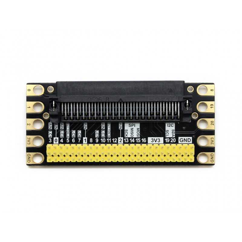 This is an edge connector expansion board designed for micro:bit, breakout the I/O pins to 2.54mm pitch pinheaders for easy use.