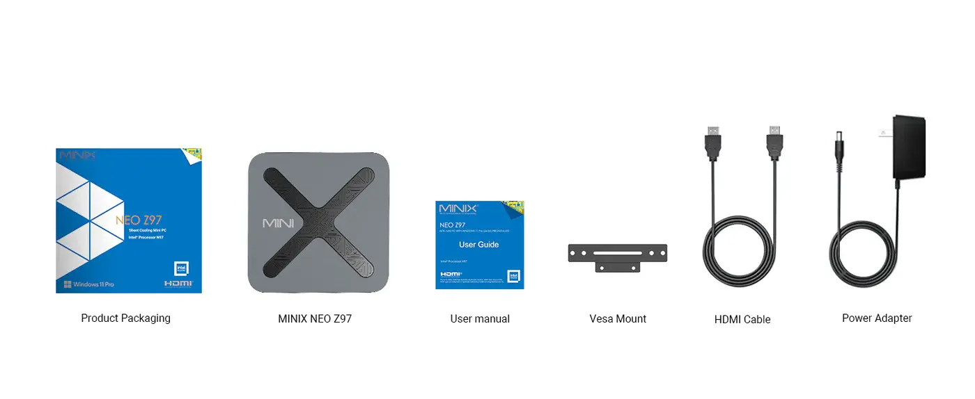 The MINIX NEO Z97 is a compact mini PC powered by the Intel N97 processor, offering balanced performance for daily tasks, office applications, and multimedia use. Equipped with 12GB LPDDR5X memory and a 512GB NVMe SSD, this device supports up to three 4K displays, features fast wireless connectivity, and has an energy-efficient design, making it a suitable solution for both home and office. Its sleek design and quiet operation enhance the overall user experience.