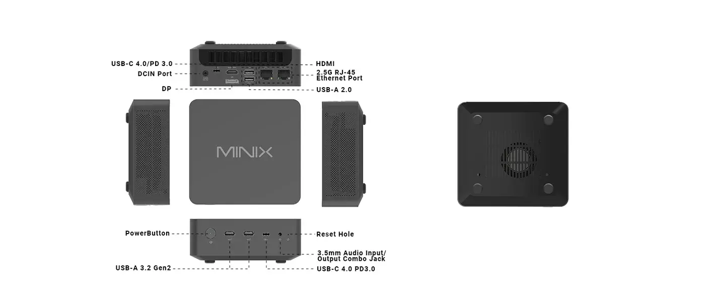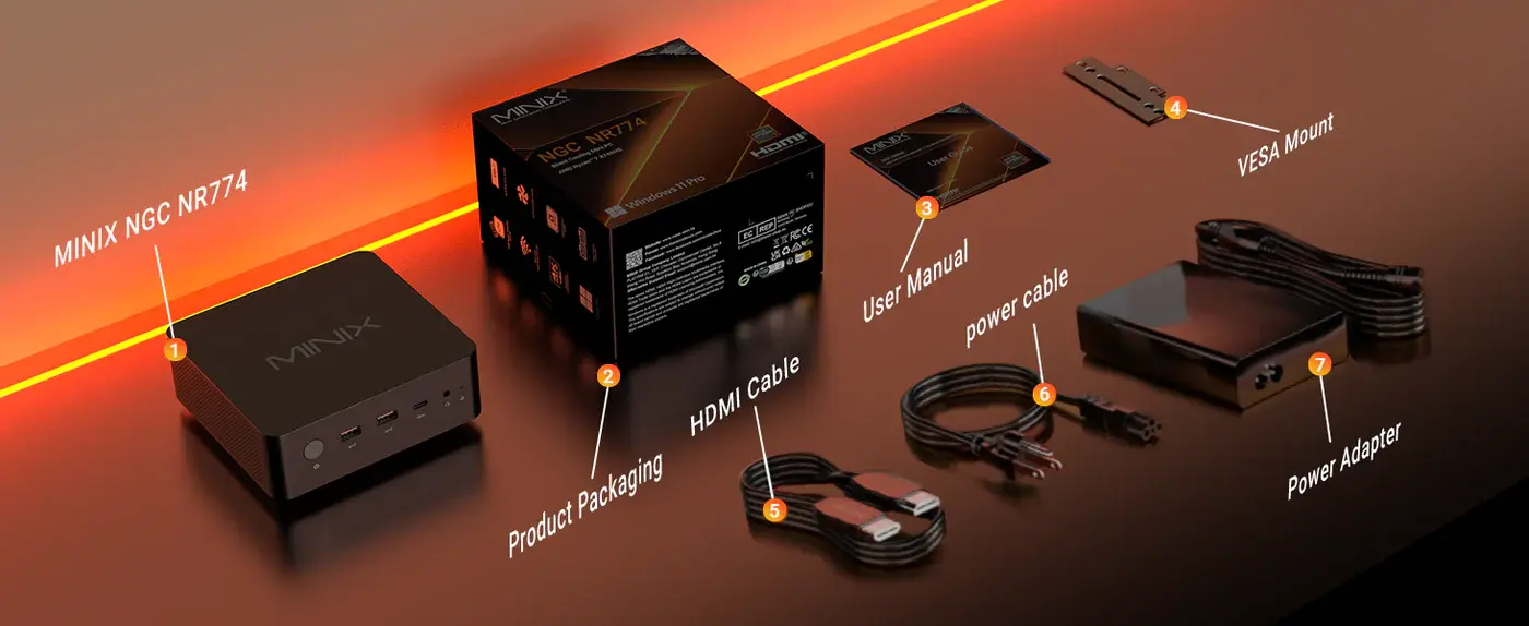 The MINIX NGC NR774 is a compact mini PC powered by the AMD Ryzen 7 8745HS processor and Radeon 780M graphics, delivering top-level performance. With 32GB DDR5 memory, 1TB PCIe 4.0 SSD storage, dual 2.5G Ethernet, and Wi-Fi 6E support, it is an ideal solution for both professional workflows and multimedia experiences. Featuring advanced connectivity options, multi-display support, and a modern design, it provides a powerful, future-ready system for office and home use.