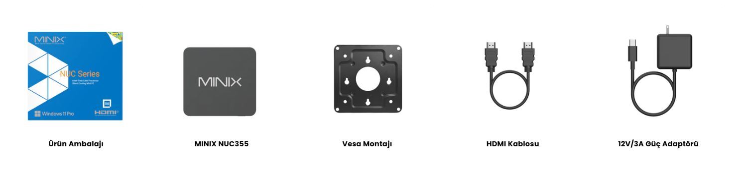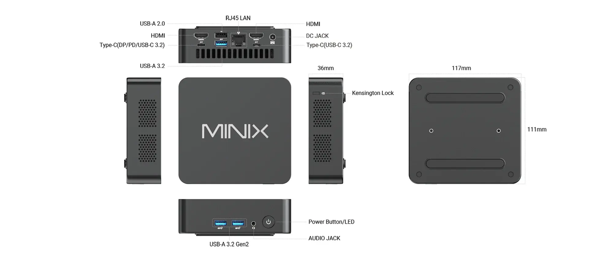 The MINIX NUC355 is a compact and efficient solution powered by the Intel Core i3-N305 processor, 16GB LPDDR5X memory, and a 512GB NVMe SSD, making it ideal for daily tasks, office applications, and multimedia use. With support for up to three 4K displays, dual 2.5G Ethernet, and the latest Wi-Fi 6 technology, it delivers excellent performance for both home and office use. Its quiet operation, energy efficiency, and sleek design provide a modern mini PC experience.