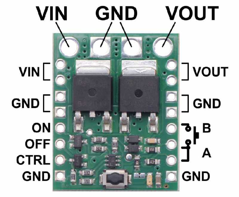 CTRL pin: This pin directly determines the state of the switch. A high pulse (> 1 V) on this pin turns on the switch; a low pulse (e.g. driving the pin low with a microcontroller output line or pushing a button connected from this pin to ground) turns the switch off. Leave this pin disconnected or floating when not trying to set the switch state. Note that this pin should not be driven high at the same time the “OFF” pin is driven high.