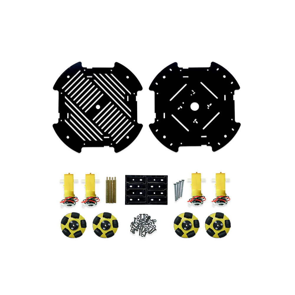 Omni tekerleklere sahip robot platformları, son zamanlarda robotik uygulamalarda sıkça kullanılan, üstün hareket kabiliyeti sayesinde istenilen yönlerde hareket edebilen dörtgen bir yapıdadır. Bu model omni tekerlekli robot platformu büyük bir alana sahiptir. Eğer daha ufak bir hacme ihtiyacınız varsa sitemizdeki diğer robot platformlarını inceleyebilirsiniz.