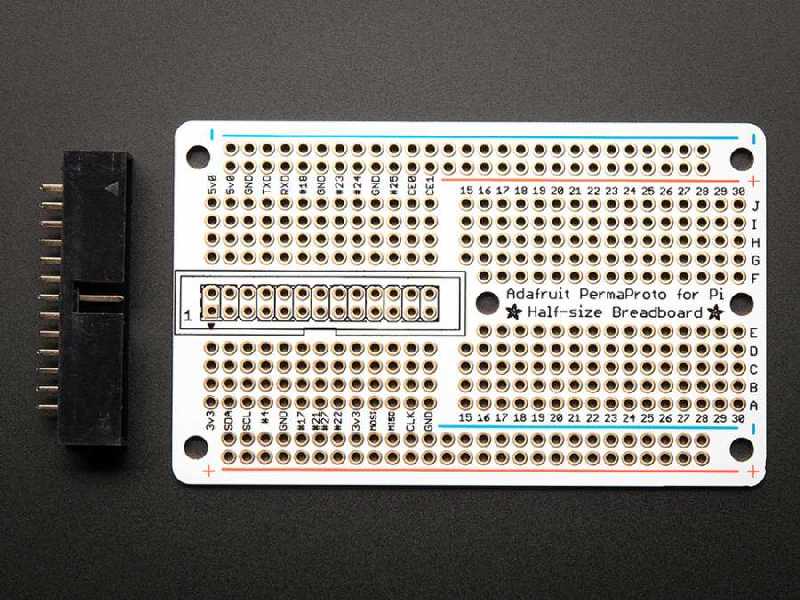 Notify me when its in stockDue to this product, you have a stripboard which you can use for prototyping works with Raspberry Pi. You can carry GPIO of your Raspberry Pi to this board with 2x13 ribbon cable connector. Also there are names of Raspberry Pi GPIO pins on this connector.