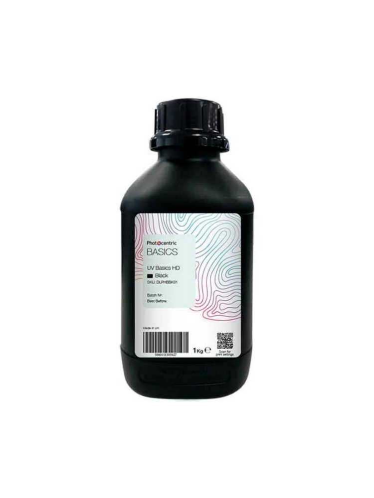 Photocentric UV Basics HD Black is a professional 3D printer resin offering durability and smooth surface quality. With high detail resolution and low shrinkage rate, it is ideal for producing precise and dimensionally accurate parts. Its black color allows for sleek and opaque surface finishes.