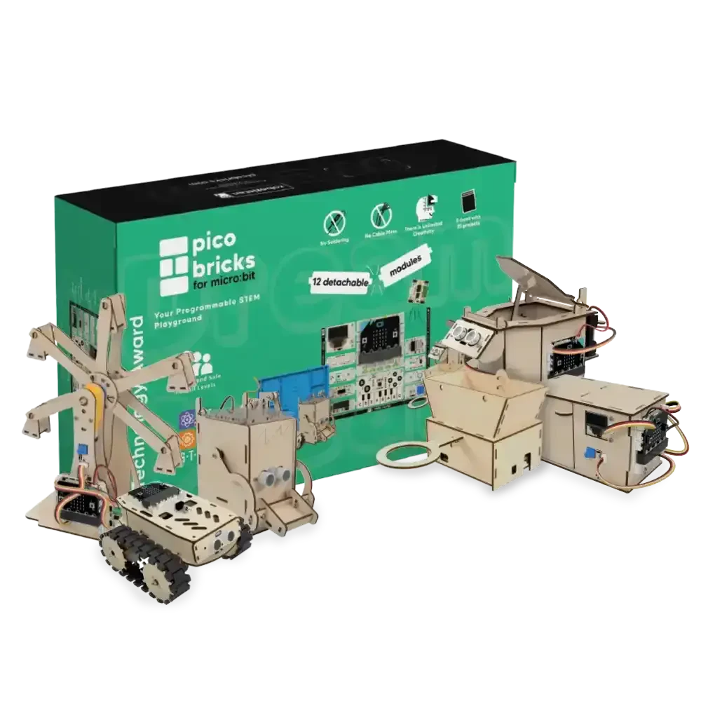 PicoBricks is a Micro:Bit-based robotic coding kit built on the world’s most popular STEM education project board. It is designed to accelerate learning in robotics and make maker projects easier. It stands out with its 12 detachable modules.