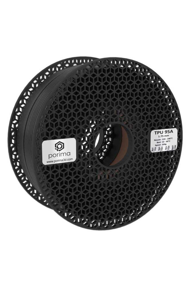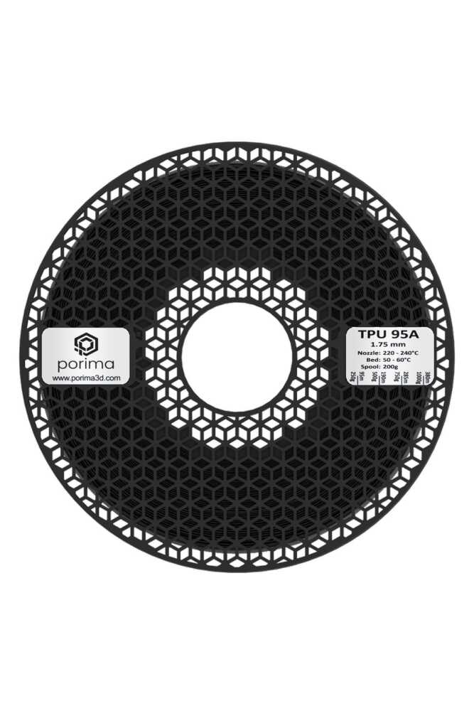 The Porima 3D 1.75mm TPU 95A® Filament is a flexible filament that offers high Shore A95 flexibility. It has a high elongation capability, with over 500% stretchability, making it suitable for applications requiring flexibility and elasticity.