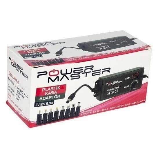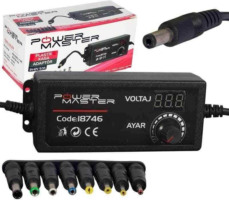 Powermaster 3 V/12 V 5 A Çok Uçlu Ayarlı Kademeli Adaptör