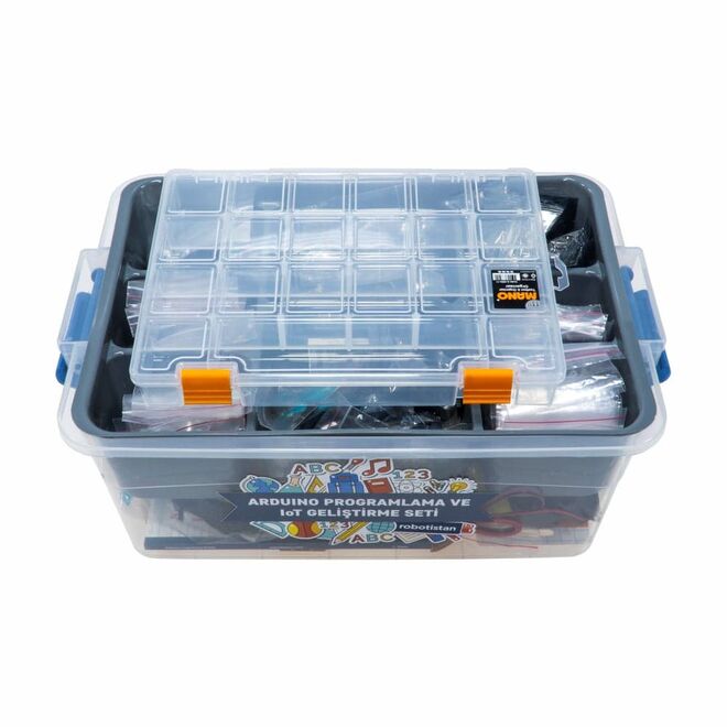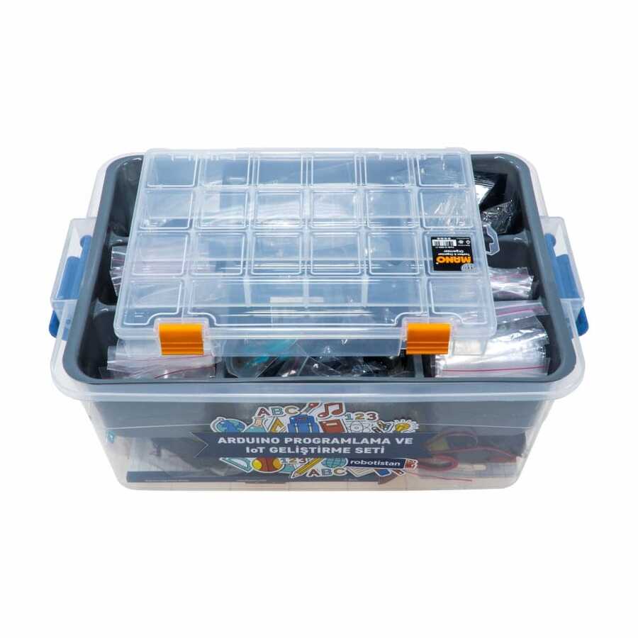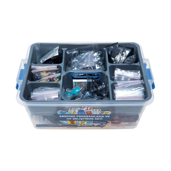 Arduino Programlama ve IoT Geliştirme Seti, nesnelerin interneti (IoT) projeleriniz için ihtiyaç duyduğunuz tüm parçaları içeren kapsamlı bir pakettir. IoT, akıllı cihazların birbirleriyle iletişim içinde olması anlamına gelir ve bu set, kendi IoT projelerinizi geliştirmek için mükemmel bir başlangıç noktasıdır. Robotistan Blogu'muzu takip ederek örnek projeler hakkında bilgi edinebilirsiniz.