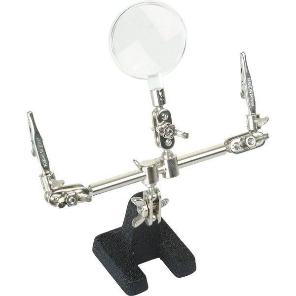 It is used in especially electronic soldering at first and hobby acitivites for stabilizing and detailed examination with its 2.5X maginifying glass.