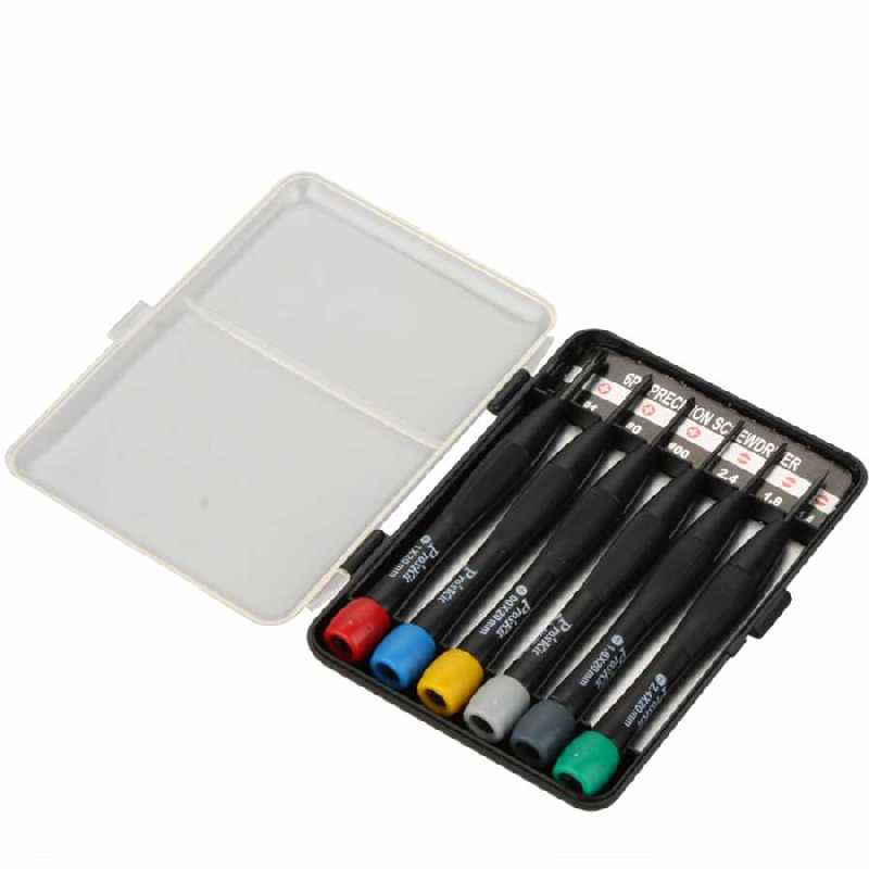 Proskit Saatçi Tornavida Seti, küçük elektronik cihaz veya projeleriniz de kullanacağınız ufak vidaları döner başlığı ile döndürme hareketlerinizi kolaylaştırarak açmanızı sağlayacak 6 farklı tornavidadan oluşan bir settir. Ayrıca tornavidaların sapında kullanımı kolaylaştırmak adına kaymayı önleyici şerit ve dayanıklı ABS malzemeden yapılmıştır.