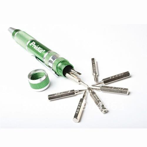 Proskit SD-9814 Kalem şeklindeki 9 parçalık tornavida seti ile gittiğiniz yerde cebinize takıp rahatlıkla yanınızda taşıyacağınız ve gerektiğinde direk kullanabileceğiniz oldukça şık ve bir o kadar kullanışlı bir üründür. Mobil telefon tamiri için popüler uçları içerir.
