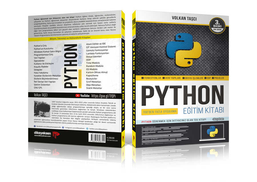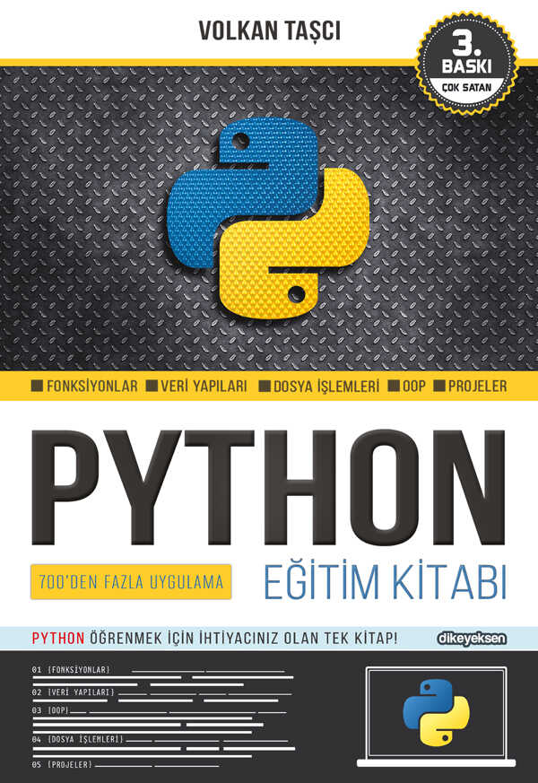 Python Eğitim Kitabı Python öğrenmek için ihtiyacınız olan tek kitap! Python Eğitim Kitabı, öğrenciler, mühendisler, çalışanlar ve Python öğrenmek isteyenler düşünülerek herkese hitap edecek şekilde görsellerle zenginleştirilmiş, bolca kod örnekleri ve projelerle okura pratiklik kazandırılması amaçlanarak kaleme alınmıştır. Projeler özellikle okurun düşünme refleksine yön vermek için bazen zorlu yollarla tasarlanmış bazen de pratiklik kazandırması amacıyla kolay yollar tercih edilmiştir. Yalnızca Python değil diğer tüm programlama dilleri için geçerli olan verilerin saklanması konusu birden çok metot ile gösterilmiş, farklı dosya formatları ile çalışması anlatılmıştır. Belki de en önemli konu olan Nesne Tabanlı Programlama derinlemesine işlenmiş örneklerle pekiştirilmiştir.