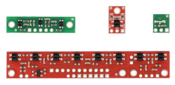 Notify me when its in stockThe QTR-3RC reflectance sensor array is intended as a line sensor, but it can be used as a general-purpose proximity or reflectance sensor. The module is a convenient carrier for three IR emitter and receiver (phototransistor) pairs. With sensors spaced at intervals of 0.375″ (9.525 mm) along of the board’s longer axis, this array works well as a minimal detector for line-following robots, as line-following courses are commonly made using 3/4″ (19 mm) black electrical tape. The middle sensor is slightly offset along the short axis of the board.