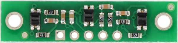 Notify me when its in stockThe QTR-3RC reflectance sensor array is intended as a line sensor, but it can be used as a general-purpose proximity or reflectance sensor. The module is a convenient carrier for three IR emitter and receiver (phototransistor) pairs. With sensors spaced at intervals of 0.375″ (9.525 mm) along of the board’s longer axis, this array works well as a minimal detector for line-following robots, as line-following courses are commonly made using 3/4″ (19 mm) black electrical tape. The middle sensor is slightly offset along the short axis of the board.