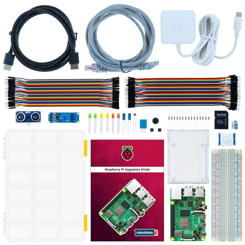 Süper Başlangıç Seti, Kombo Kit’e göre daha fazla içeriğe sahiptir. Raspberry Pi derslerimizde 11. derse kadar anlatılan uygulamaları bu set ile tamamlayabilirsiniz. Set içerisinde gelen kapsamlı ve güncel kitapçıkta tüm Raspberry Pi uygulamalarımız detaylarıyla anlatılmaktadır.