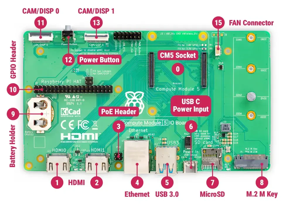 Raspberry Pi Compute Module 5 IO Board Physical Features: