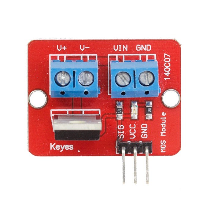 Notify me when its in stockHere is a simple breakout board for the IRF520 Mosfet. Easy hookup to your Arduino or other 3-5v micro controller. Pulse current through a PWM pin, and use this to control a pump, LED, or other DC device at up to 24v, and ~5A. (You can check the specs here)