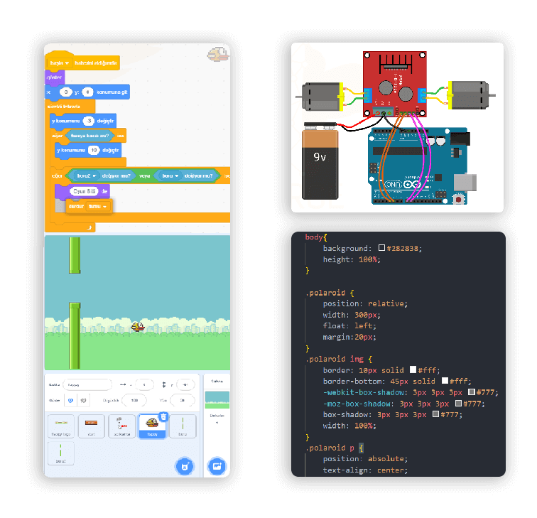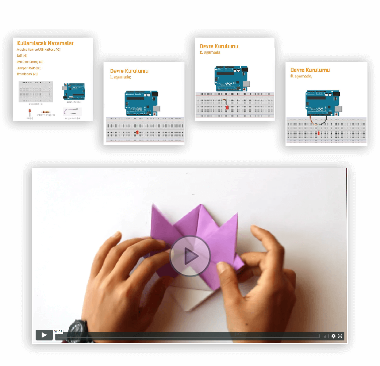 Verilen proje görevlerine ait çözümler tüm ayrıntı ve adımları kapsayan kılavuzlarda bulunur. Tasarım ve kodlama başlıklarına ait her işlem adımı farklı sayfalar ile gösterilir. Kılavuzlar animasyon ve etkinlikle ile zenginleştirilmiştir. Kılavuzlara ek olarak her derse ait teorik anlatımları ve bütün işlem adımlarını bulunduran video dersler de Akademi’de bulunur.