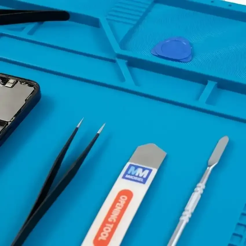 S180 silikon çalışma tamir pedi, geniş çalışma alanı gerektiren elektronik tamir, bakım ve lehimleme işlemleri için özel olarak tasarlanmıştır. 555x350mm ölçüleri sayesinde profesyonel kullanımlar için ideal bir yüzey sunar. Isıya dayanıklı silikon yapısı, lehimleme sırasında oluşan yüksek sıcaklıklara karşı çalışma alanınızı korurken, manyetik (mıknatıslı) bölmeleri sayesinde vidalar ve küçük metal parçalar güvenli bir şekilde sabitlenir. Kaymaz ve esnek yüzeyi ile uzun süreli çalışmalarda konfor ve düzen sağlar.