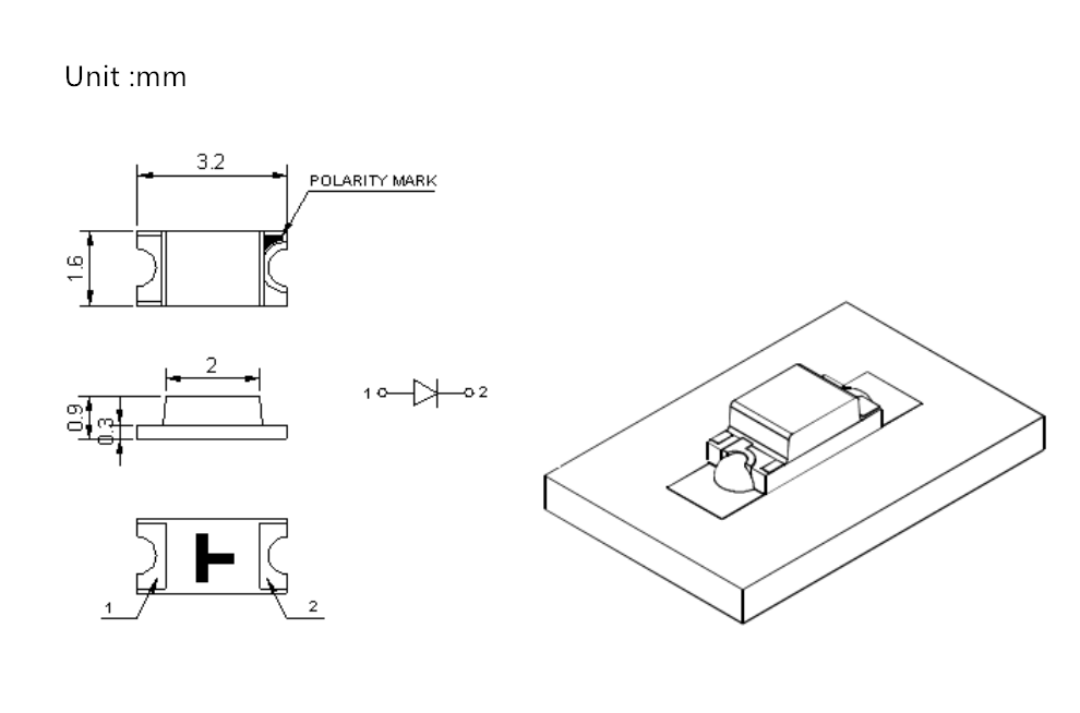 İleri yönde çalışma gerilimi (Vf): 2.8 – 3.3 V