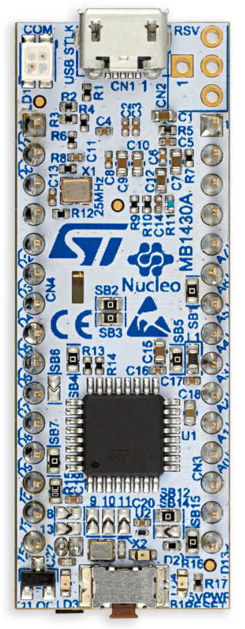 Thanks to the integrated ST-LINK/V3E debugger and programmer, development can be carried out quickly without the need for external hardware. Arduino Nano V3 compatible expansion connectors make it possible to use a wide range of modules and peripherals despite the board’s compact size.