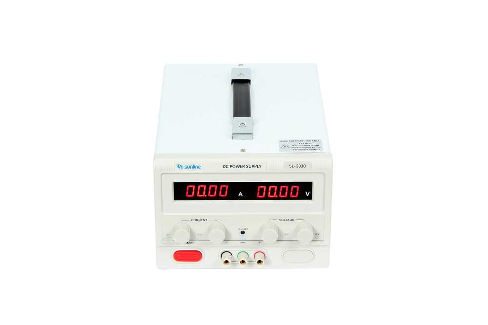 Sunline SL 30-30 S, bir cihaza güç sağlamak için doğru akım veren güç kaynağı türüdür. DC güç kaynağının birincil işlevi, yüke güç sağlamak için kaynaktan gelen elektriği doğru gerilim ve akıma dönüştürmektir. Ayrıca 0-30V arasında çıkış voltajı ayarlanabilen bu güç kaynağı çok kaliteli ve kullanışlı bir üründür. 30 ampere kadar akım çıkışı verebilecek tarzdadır. Bu sayede laboratuvarlarda ve atölye çalışmalarında sıklıkla kullanılmaktadır.Güç kaynağı üzerinde düşük voltaj değeri değişimi ve ince ayar için 'FINE' potu bulunmaktadır. Akım değeri miliamper ve amper olarak ayarlanabilmektedir. Akım sınırlama özelliği mevcuttur. Güç kaynakları ile ilgili olan yazımızı buradan okuyabilirsiniz.