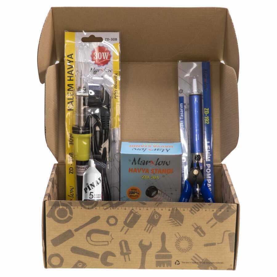 Super Soldering Kit is a unique and complete kit created by Robotistan for those who want to start "Do It Yourself" projects, those who are curious about electronics and circuit boards, and those who will solder as a hobby or as a job. This kit contains all the essential tools you may need. By having a soldering iron set, you can start your "Do It Yourself" projects right away. Product images are representative. Different colors and varieties of products may be sent depending on stock availability.