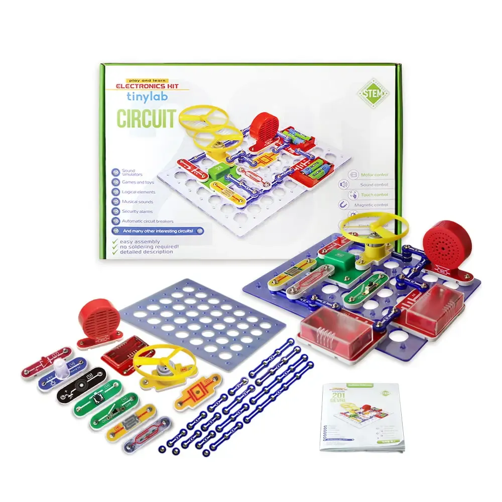 Tinylab Çıt Çıt Devreler ile elektronik artık karmaşık değil! 201 deneylik bu kapsamlı eğitim setiyle, çocuklar hem öğreniyor hem eğleniyor.