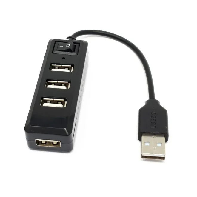 USB hub, her biri 480 MBps'ye kadar maksimum toplam iletim hızına sahip dört USB 2.0 bağlantı noktasına sahiptir. Dört bağlantı noktasının tümü USB kablosundan güç alır. Ayrıca, dört USB bağlantı noktasını kontrol eden tek bir açma-kapama düğmesi vardır. Harici bir güç kaynağı için 1,7 mm'lik bir bağlantı noktası vardır, ancak bu bağlantı noktası doğrudan 5V hattına bağlıdır, bu nedenle harici olarak güç sağlamanız gerekiyorsa USB bağlantısından 5V hattını kesmenizi öneririz.